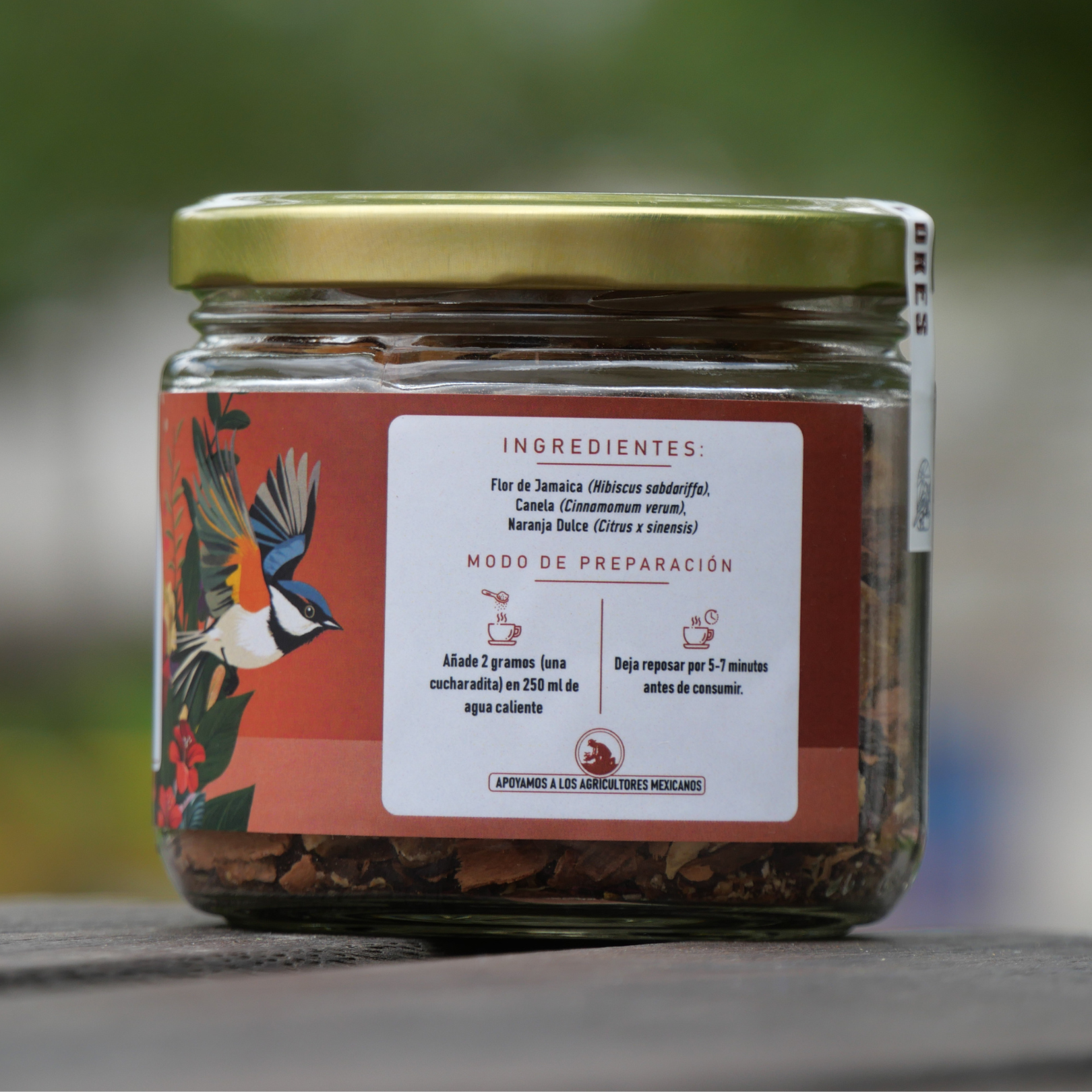 Su sabor es vibrante: un equilibrio entre el brillo cítrico de la naranja, la intensidad floral de la jamaica y la calidez de la canela. Una infusión para hidratar, refrescar y disfrutar a cualquier hora.